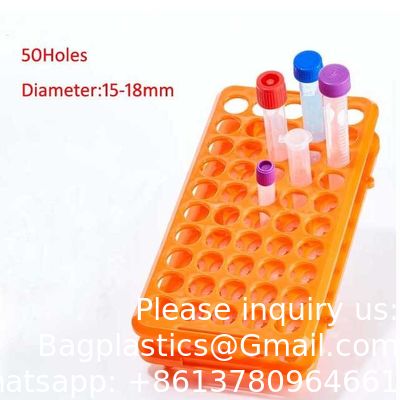 Réservoir de tubes à centrifugeuse en PP multifonctionnel de laboratoire 50 trous*18 mm Réservoir de tubes à essai en plastique Circlip silicone