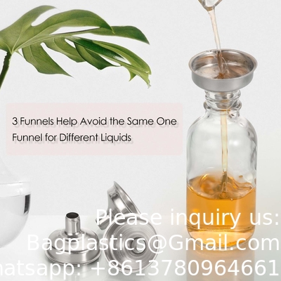 Les accessoires fonctionnels:les produits à usage unique.Beaucoup de gens achètent des entonnoirs et des bouteilles ensemble. Nous les combinons et fixons un prix bas. Les petits entonnoirs vous aident à faire des travaux avec des liquides plus efficacement. Les étiquettes ((24, 2 types) sont incluses au cas où vous en auriez besoin.Veuillez nous poser des questions: Bagplastics@Gmail.com Whatsapp: +8613780964661 Vous pouvez nous contacter en ligne