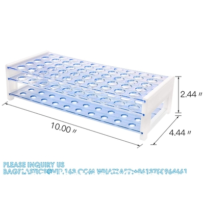 Le tube à essai a 3 couches,les produits à usage unique.2 fentes, chaque couche a une direction, faites glisser les étagères d'un côté, l'autre côté a une lèvre qui l'arrête, s'adapte très bien.Le support a trois couches de trous avec un plus petit trou au bas pour garder les tubes stables,les produits à usage unique.Et les grands trous au deuxième et au dernier étage.
