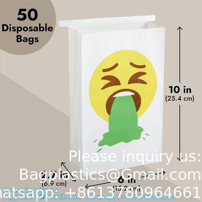 Sacs à vomir jetables de qualité supérieure: Nos sacs à vomir sont faits d'un papier spécial recouvert d'une épaisse doublure en polyéthylène (plastique), ce qui les rend résistants aux fuites, portables et jetables.les consommables jetables.com Ces sacs-maladie légers et durables peuvent être facilement rangés dans des poches de siège, des sacs à main et des sacs à dos.